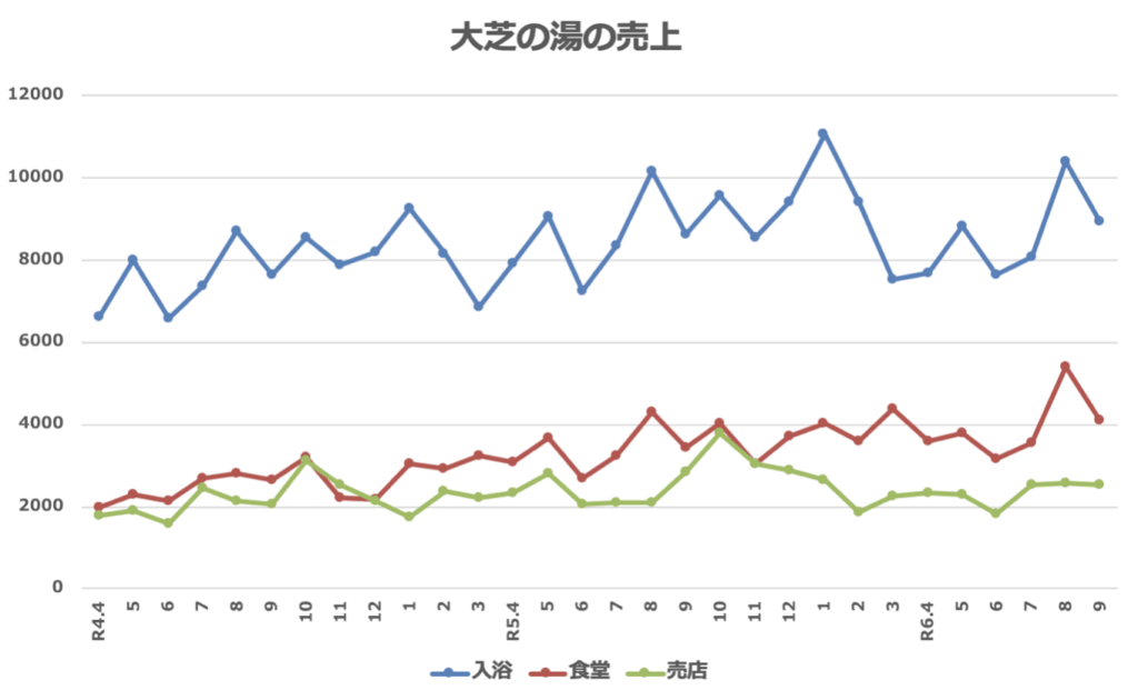 内訳では、入浴料で275万円ほど増加、食堂など入浴料以外で335万円ほど増加しました。反面、こどもの入浴料は無料としたため、38万円ほど減少しています。