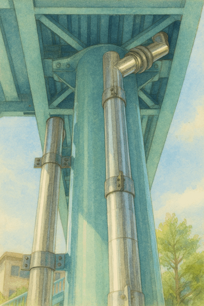 平成 29 年(2017 年) :橋⾯補修⼯、塗替え塗装⼯(⼀部)、デッキプレート・横桁補修⼯、⾼欄補修⼯(縦桟追加)、排⽔装置補修⼯(排⽔管取替)、階段接合部補修⼯、裾隠し板取替⼯、下部⼯補修⼯