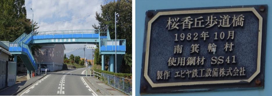 銘板にあるとおり、桜⾹丘横断歩道橋は1982 年10月に建設されました。