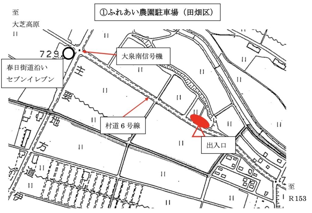 - ふれあい農園駐車場(田畑:村道6号線沿い)