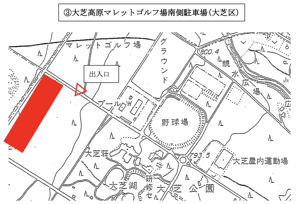 - 大芝高原マレットゴルフ場南側駐車場(大芝公園内)