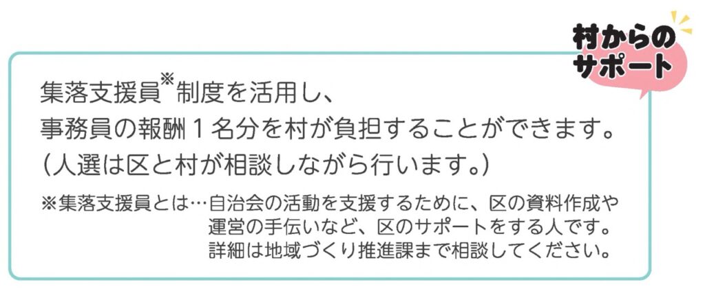 南箕輪村では、令和7年度から区長の事務を複数年サポートする事務員(集落支援員)の報酬を負担しています。
