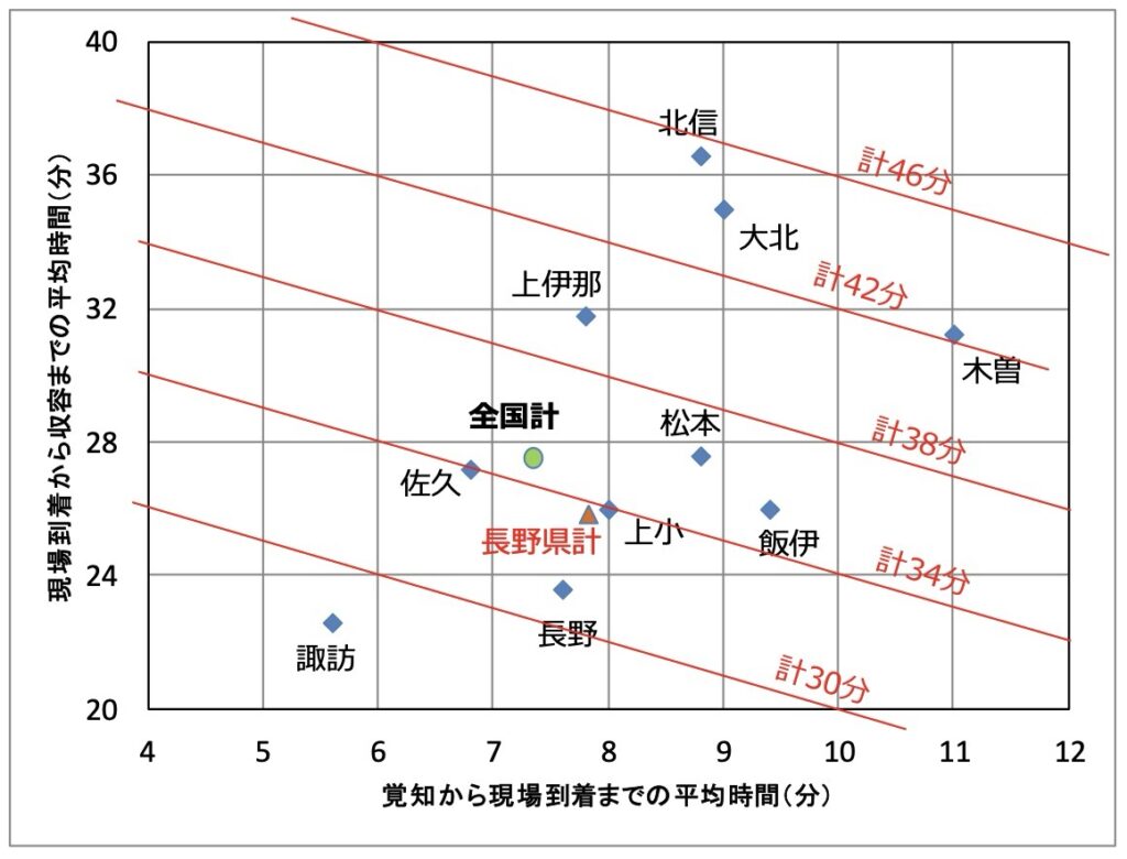上伊那では現場到着から収容までの時間がかかる傾向があります。