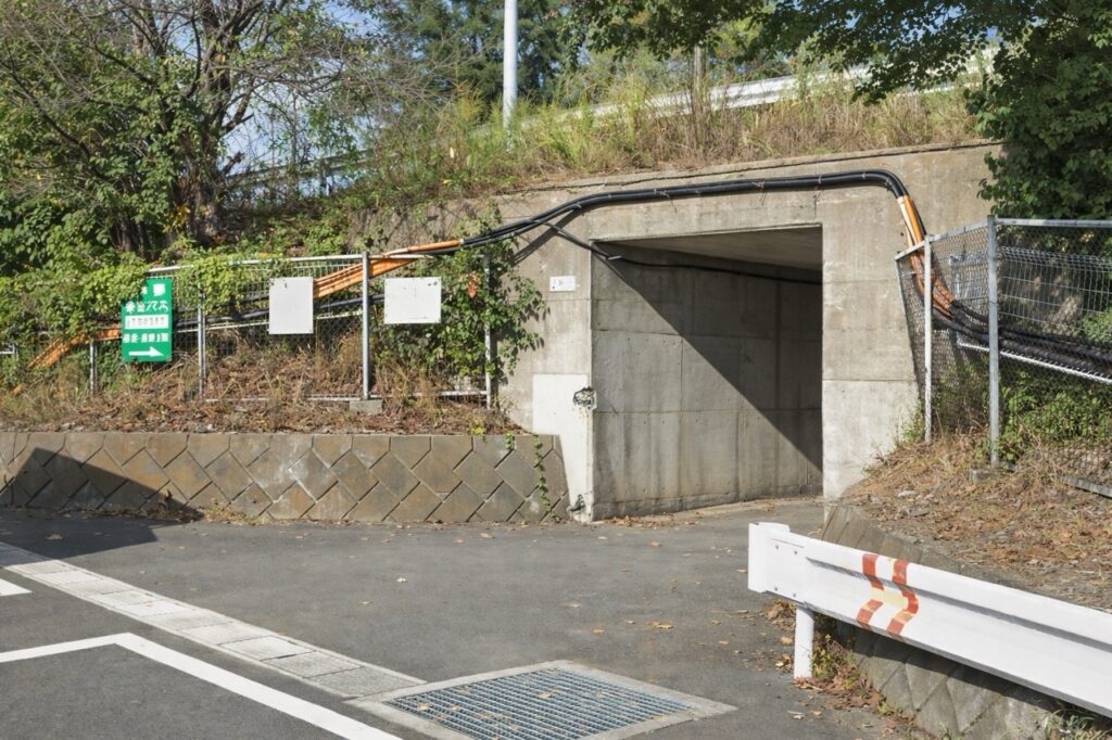 伊那地域から新宿方面に向かう際は、このようなトンネルで高速道路の下を潜って、階段を登ってバス停に向かいます。