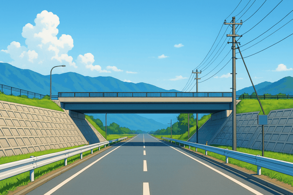 この区間は、野底跨道橋が設置予定となっており、現在、跨道橋や若宮交差点の設計が進めれています。