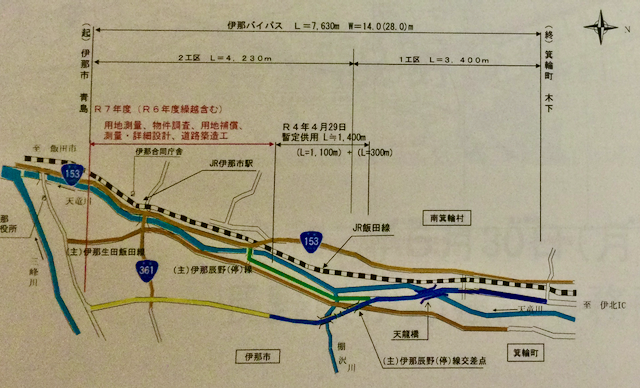 一般国道153号伊那バイパスの整備は、平成9年(1997年)に着手され、30年近く経っていますが、現在も着実に進められています。
